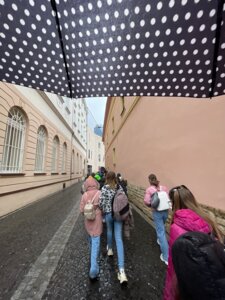 Na záver nášho výletu sme navštívili aj nákupné centrum v Žilina. Hoci nás počas dňa sprevádzalo daždivé počasie a ulice mesta boli upršané, nič nám to neubralo zo zážitku. Práve naopak – spoločne strávený čas a atmosféra mesta vytvorili príjemnú bodku za pekným kultúrnym dňom. 🎭🌧️😊