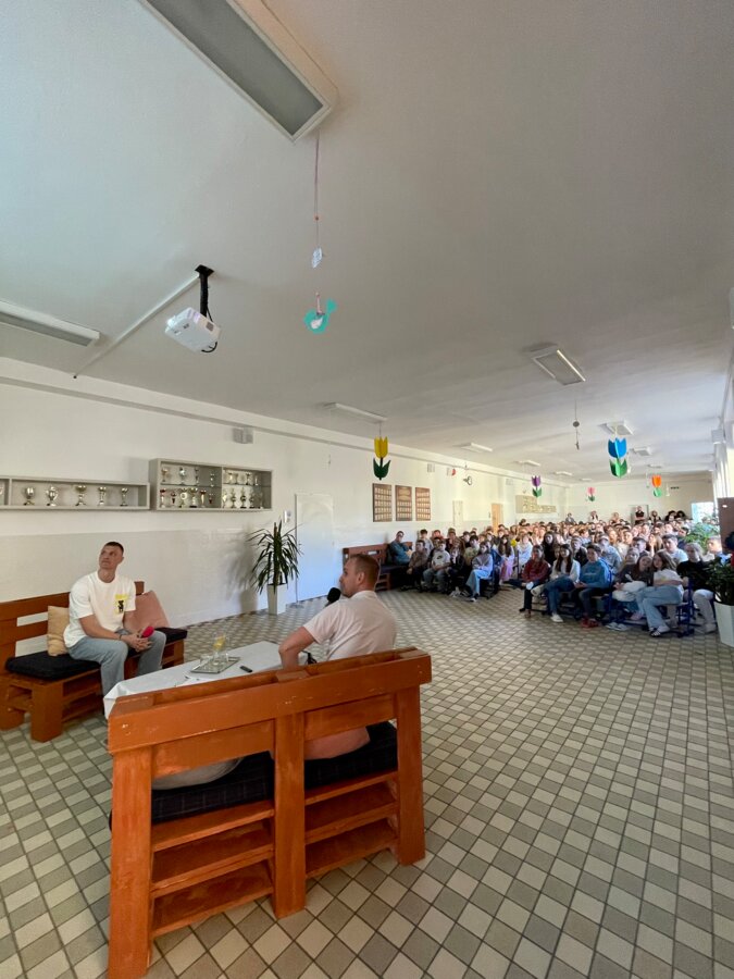 Jakub nám porozprával o svojej futbalovej ceste, ale aj o živote mimo ihriska. Podelil sa o svoje skúsenosti, zážitky a ukázal našim žiakom, že sny sa dajú naplniť, ak človek na sebe poctivo pracuje a nevzdáva sa.
