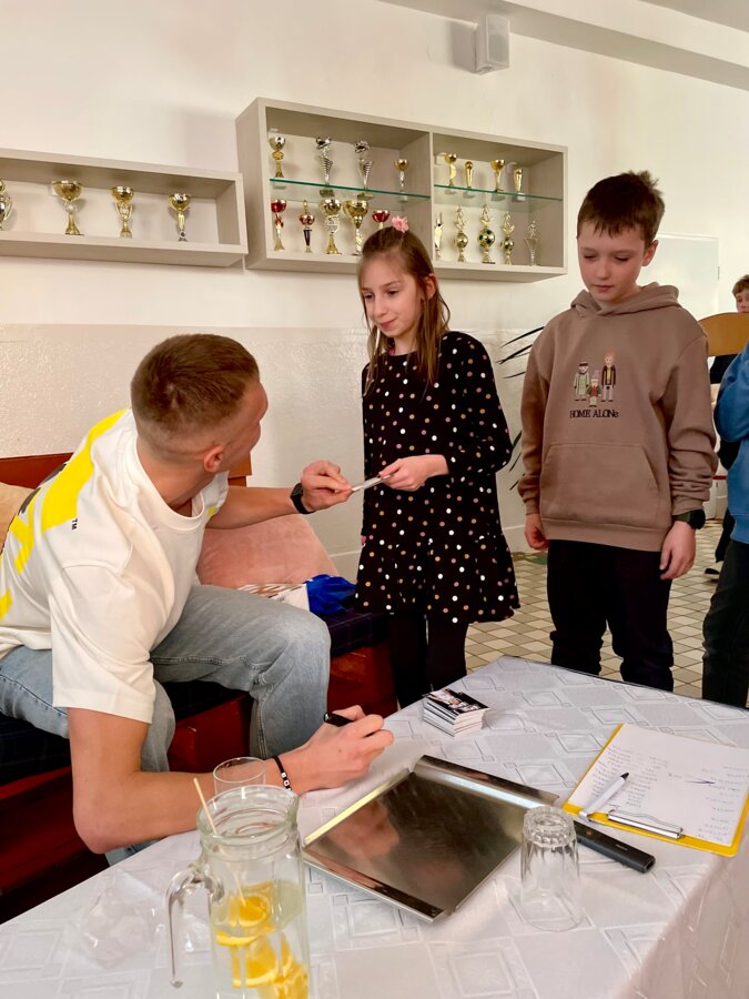 Svojím príbehim motivoval mohých mladých športovcov a pripomenul im, že poctivý tréning vždy prinesie svoje ovocie. Ná záver potešil žiakov aj podpisovými kartami či spoločnou fotkou.