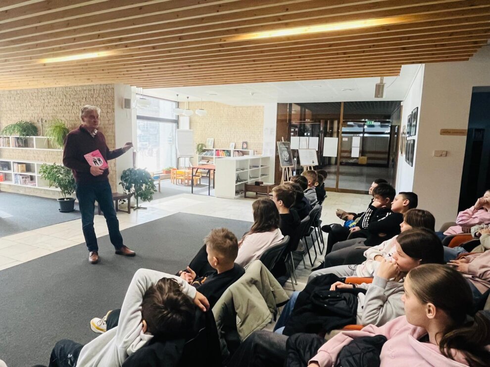 Šiestaci sa zúčastnili zaujímavej besedy s autorom detských kníh. Počas stretnutia im predstavil svoju tvorbu a porozprával aj o tom, ako vznikajú jeho príbehy. Ochotne odpovedal na množstvo otázok žiakov, ktoré sa týkali nielen jeho kníh, ale aj osobného života a práce spisovateľa.