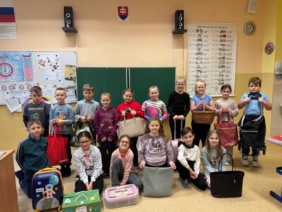 Na našej škole zavládla nezvyčajná atmosféra – žiaci prišli do školy bez svojich ruksakov. Namiesto nich si pomôcky priniesli v najrôznejších, často veľmi vtipných a originálnych „nosičoch“.