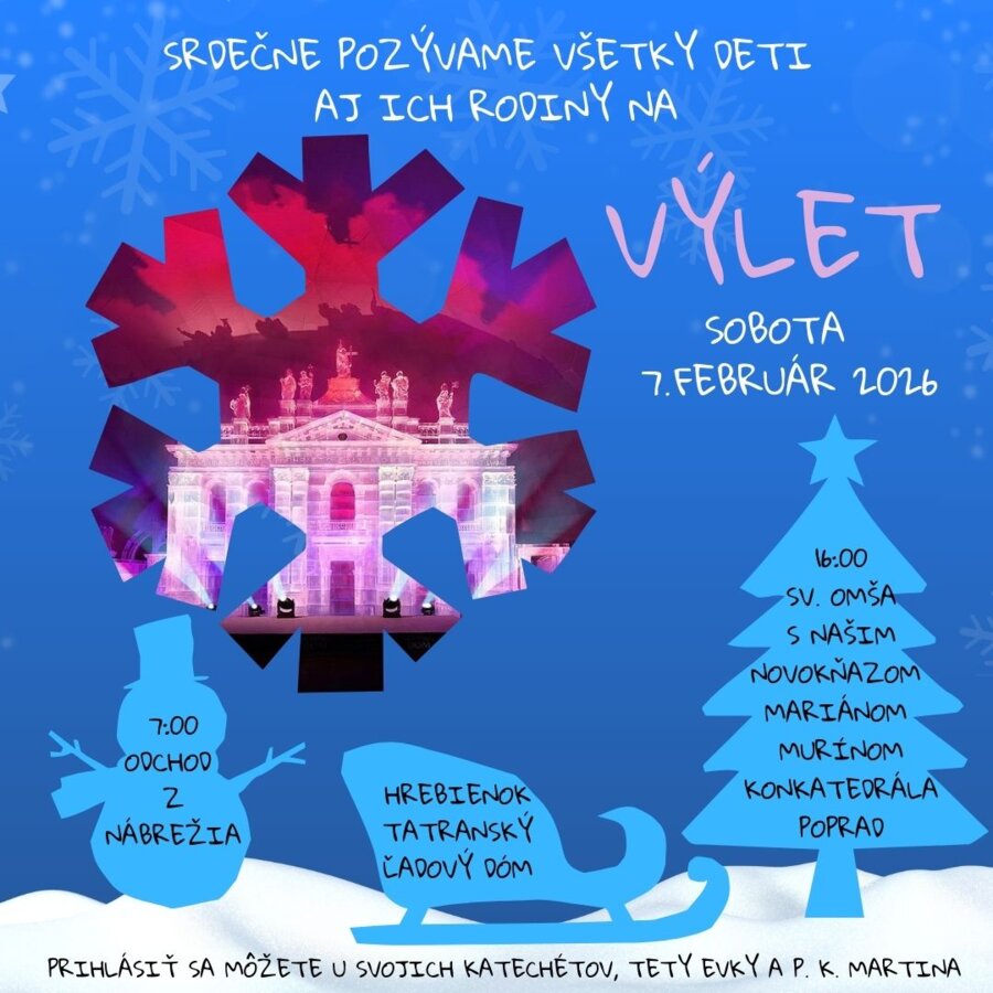 Milí rodičia a deti , srdečne pozývame na farský výlet detí na Hrebienok spojený s prehliadkou Tatranského ľadového dómu ️a sv. omšou s našim novokňazom vdp. Mariánom Murínom v Poprade.