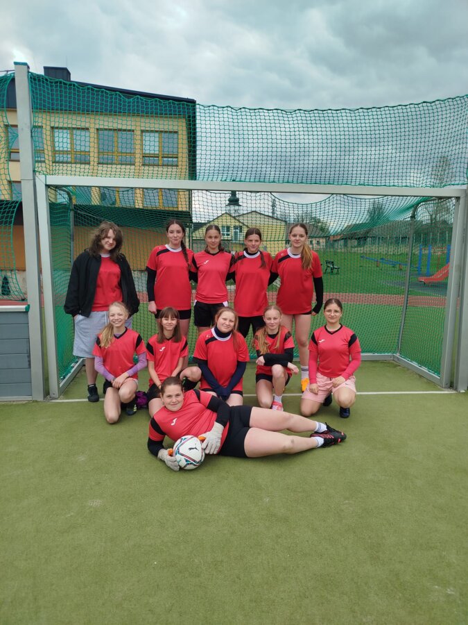 Naše šikovné žiačky v zložení: Nina Oravcová (5.C), Dominika Kubáni, Karin Migrová, Liana Orčíková, Zuzana Revajová ( všetky 6.C), Lea Hvolková ( 6.A), Rebeka Vnučáková, Klára Šubjaková, Victoria Krushynska ( 7.C) a Klaudia Dorušáková ( 7.A) minulý týždeň predviedli parádny výkon na futbalovom turnaji a úplne suverénne si vybojovali postup na okresné kolo!