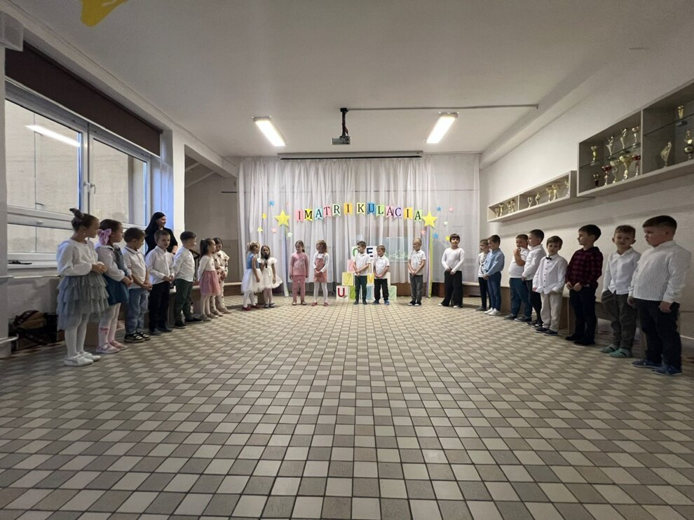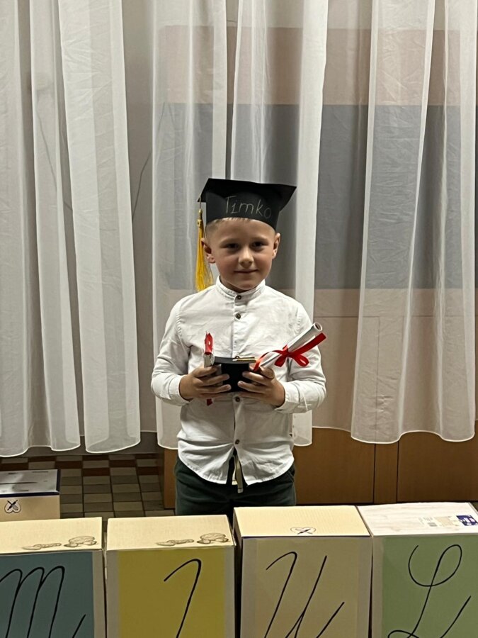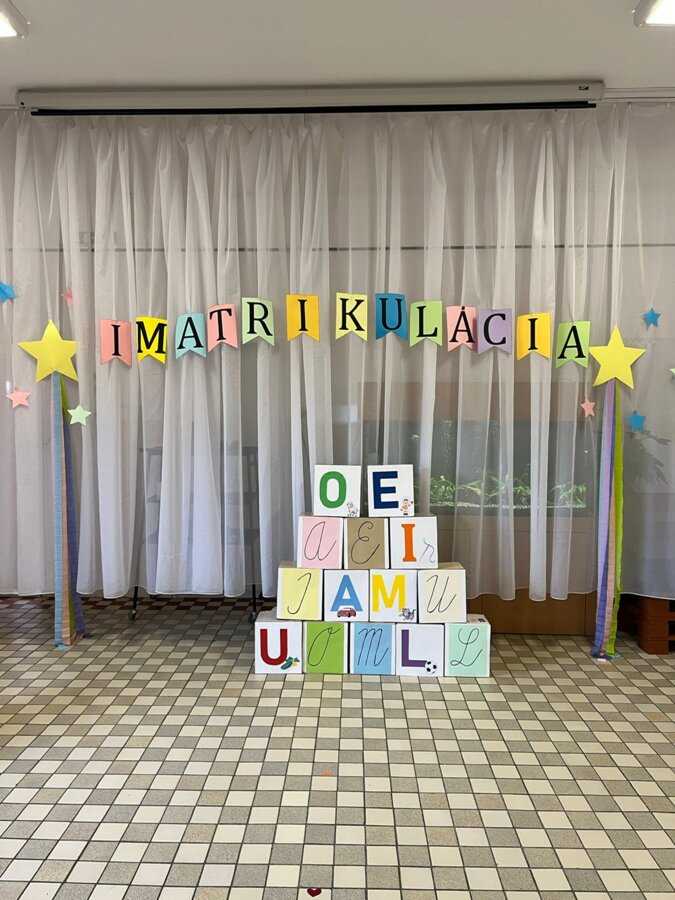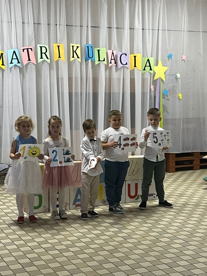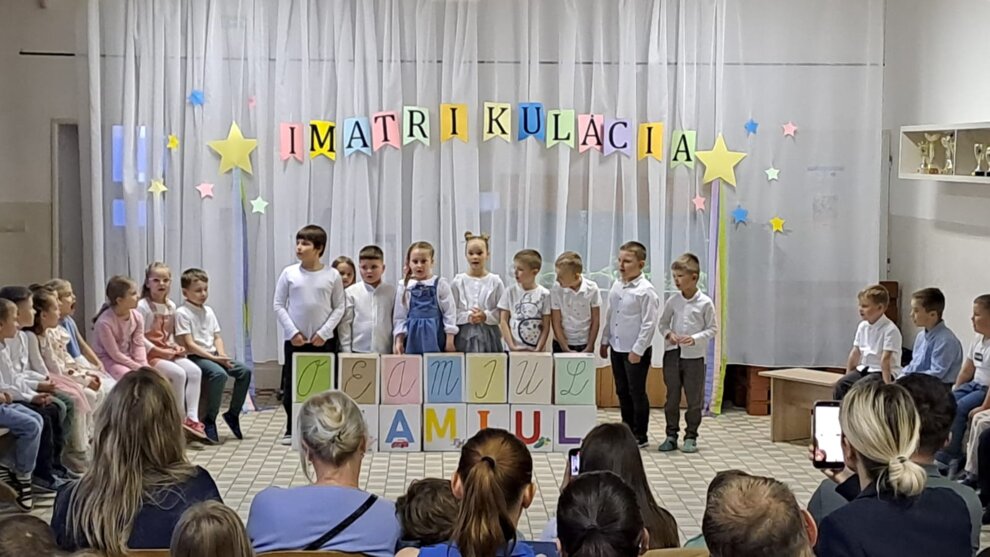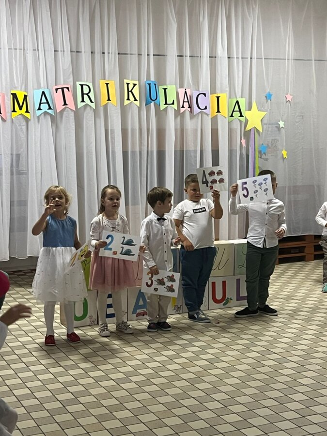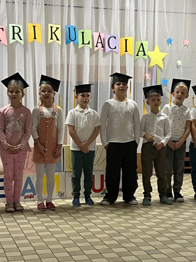 ...takto si spievali naši najmenší na záver imatrikulácie, ktorá sa konala vo štvrtok 13.11. 2025. Počas krátkeho programu prváci ukázali, čo všetko sa už v škole naučili – od recitovania básničiek, cez veselé pesničky až po šikovné tanečné kroky. Na záver zložili slávnostný sľub prváka. Sľúbili, že budú pozorní, poslušní a usilovní. Budeme všetkým držať palce, aby sa im to podarilo.