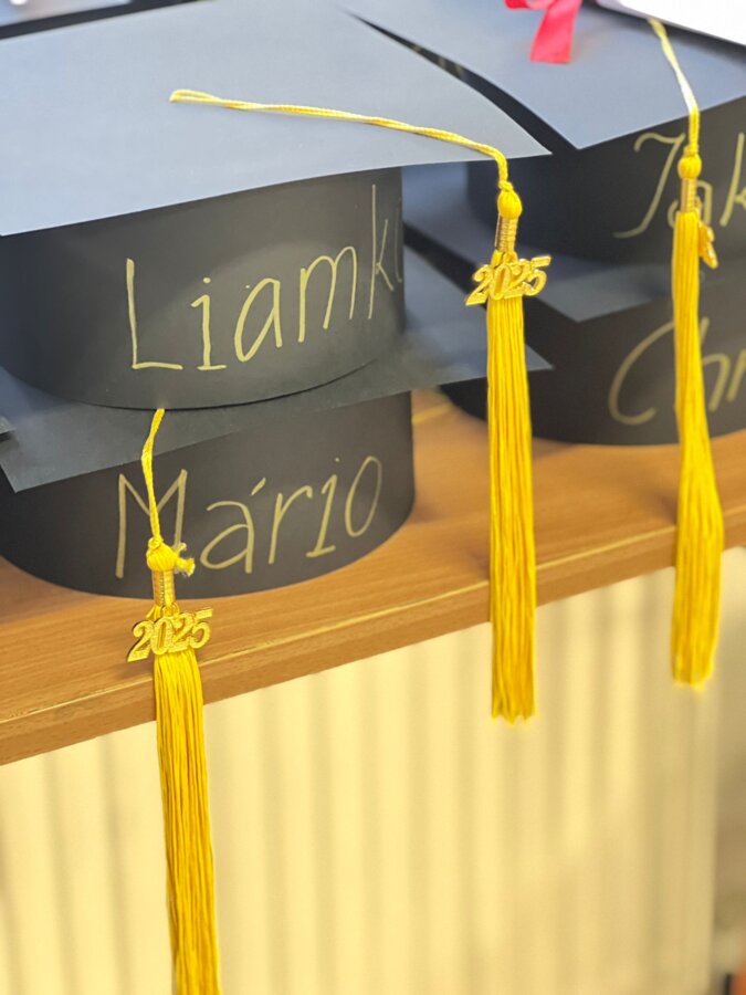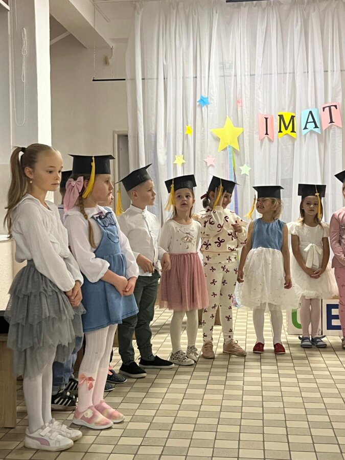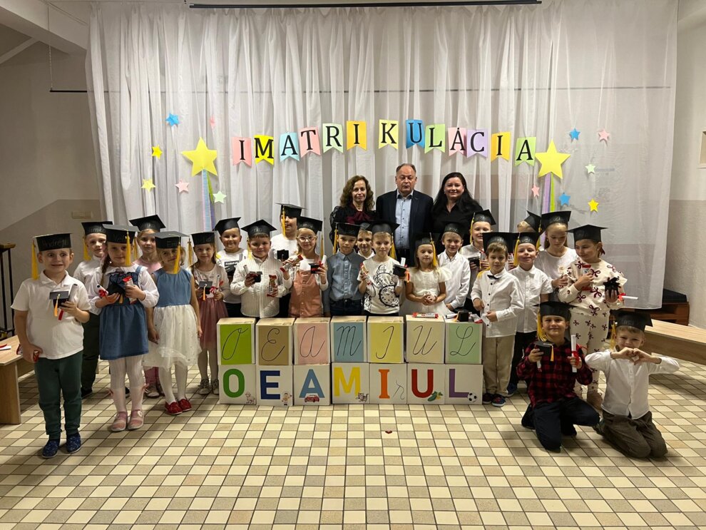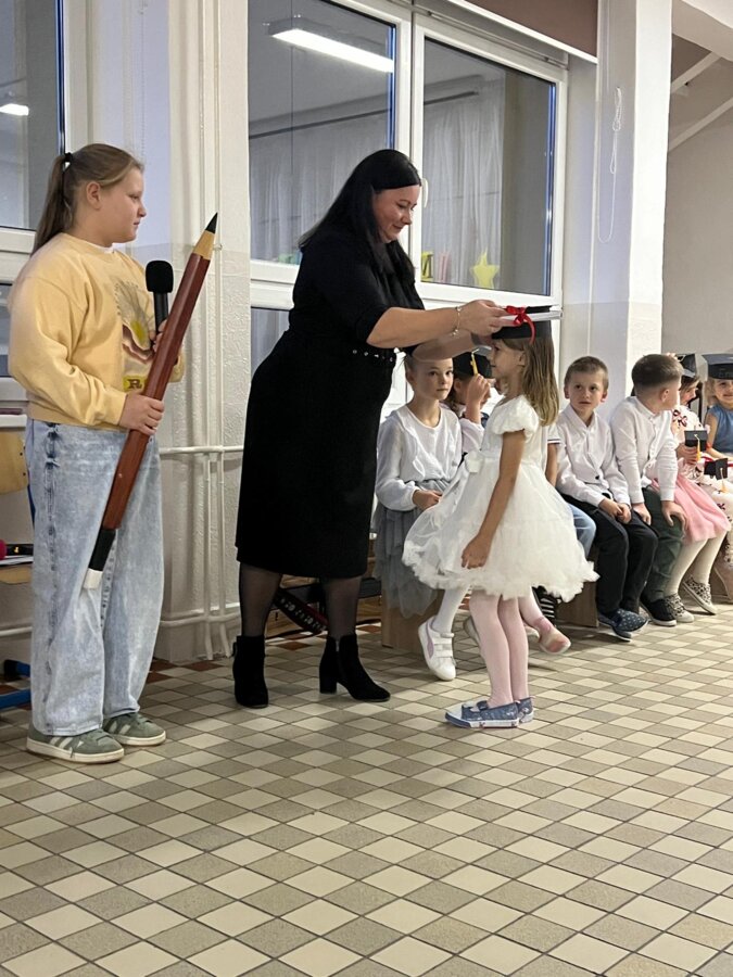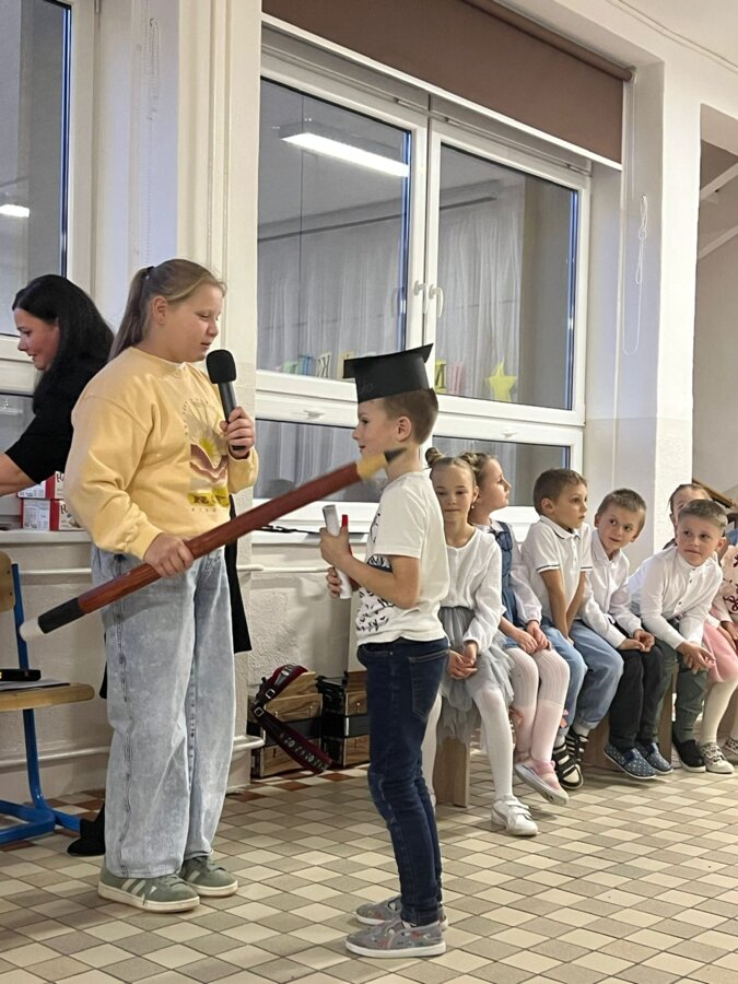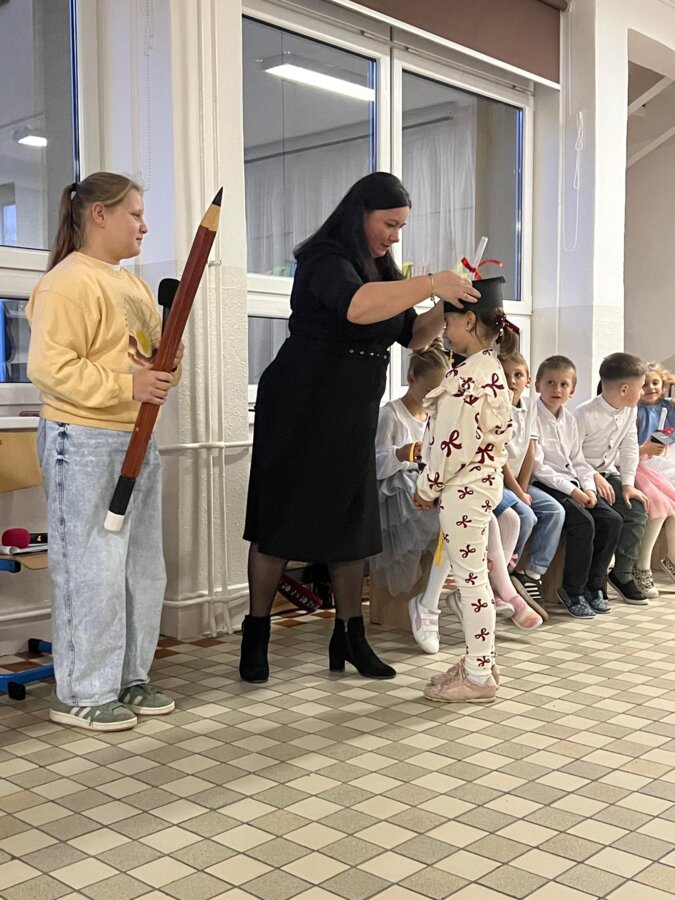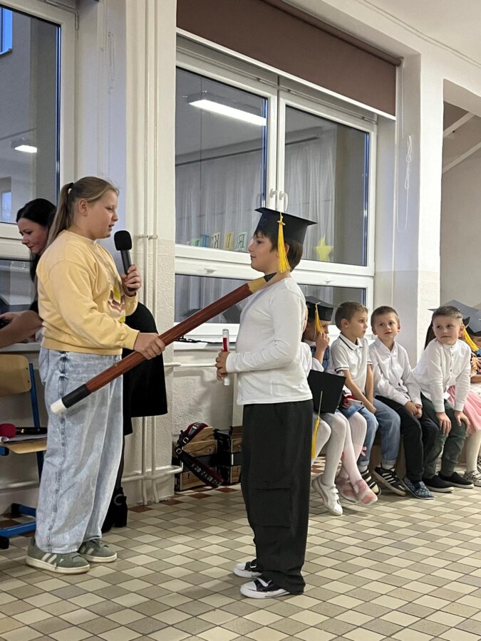 ...takto si spievali naši najmenší na záver imatrikulácie, ktorá sa konala vo štvrtok 13.11. 2025. Počas krátkeho programu prváci ukázali, čo všetko sa už v škole naučili – od recitovania básničiek, cez veselé pesničky až po šikovné tanečné kroky. Na záver zložili slávnostný sľub prváka. Sľúbili, že budú pozorní, poslušní a usilovní. Budeme všetkým držať palce, aby sa im to podarilo.