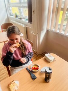 Žiaci šiesteho ročníka si na hodine anglického jazyka vyskúšali zaujímavú aktivitu zameranú na tému jedlo a reštaurácia. Do triedy si priniesli rôzne jedlá, nápoje a pomôcky, vďaka ktorým si mohli prakticky precvičiť komunikáciu v angličtine.