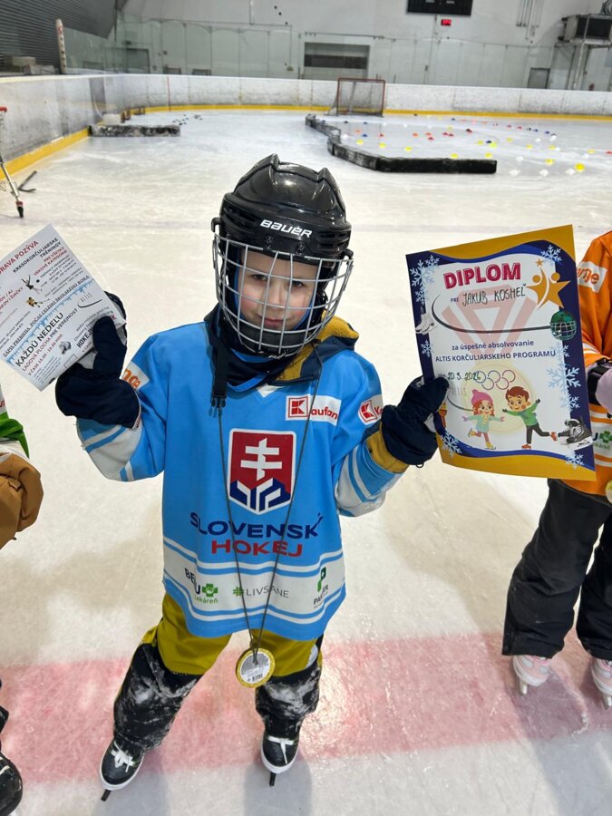 Zvládli základné korčuliarske zručnosti a z ľadu odchádzali unavení, ale s úsmevom na tvári. Veľkú radosť im urobili diplomy aj čokoládové medaily, ktoré si s chuťou vychutnali.
