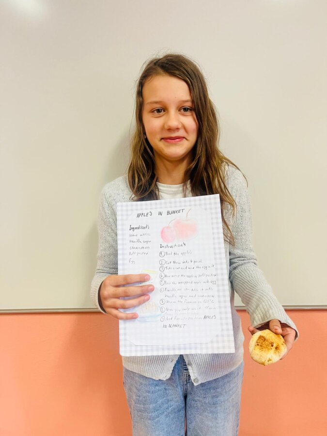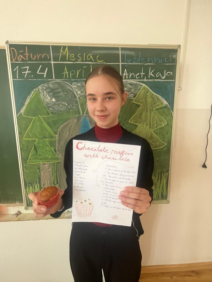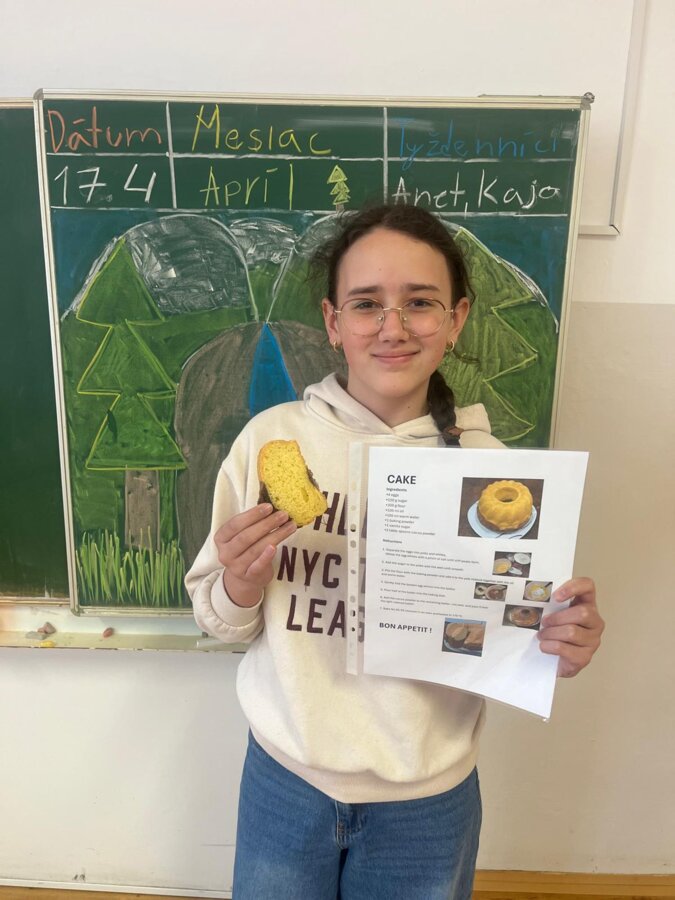 Žiaci si pripravili jednoduché recepty v angličtine, ktoré následne predstavili pred triedou. Pri prezentáciách používali základnú slovnú zásobu spojenú s varením – pomenovali ingrediencie, vysvetlili postup a opisovali, čo robia.