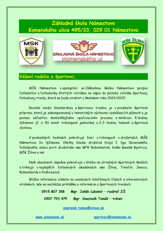 Všetky potrebné informácie o našej športovej triede zameranej na futbal nájdete tu