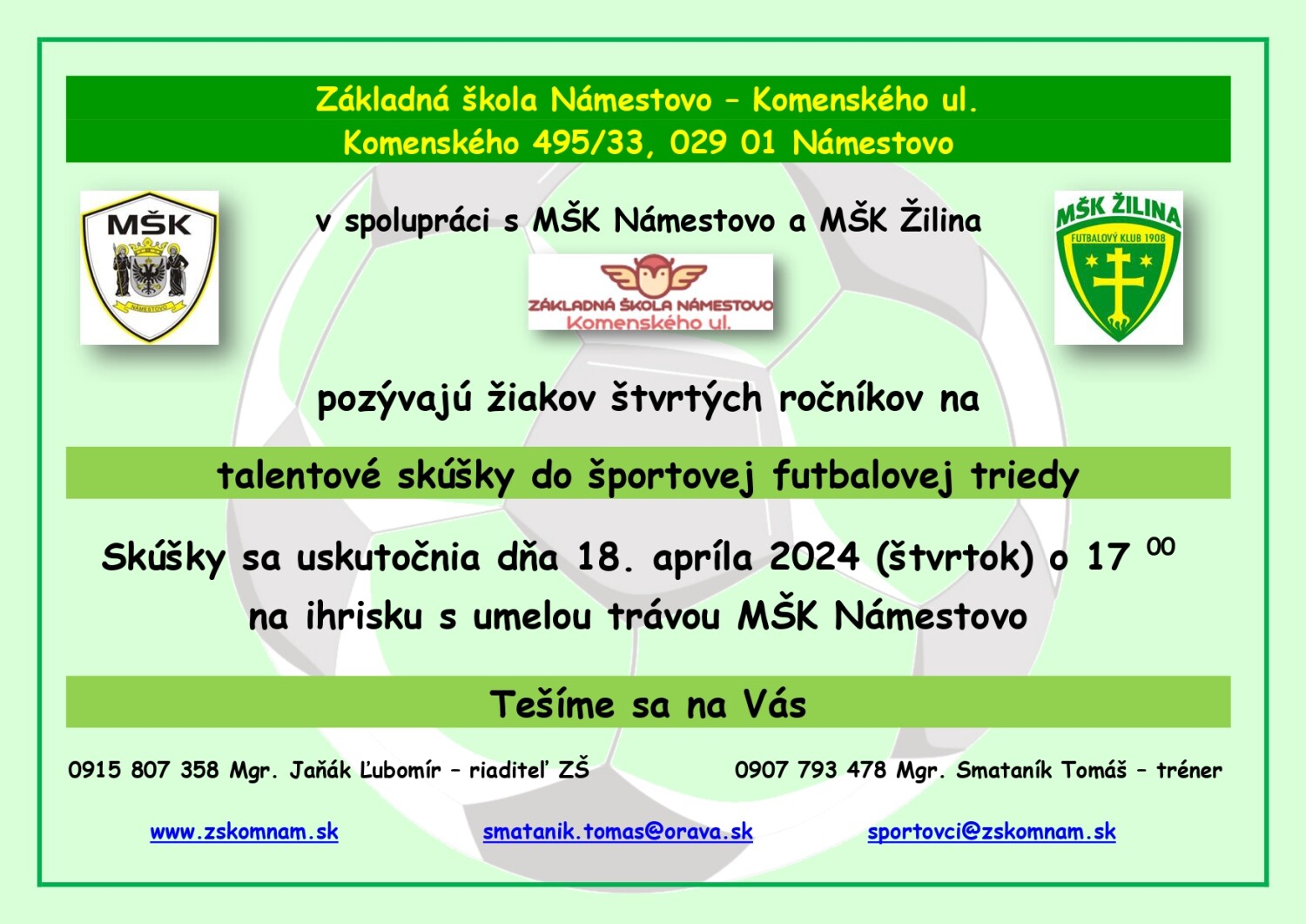Pozvánka na zápis do športovej triedy zameranej na futbal