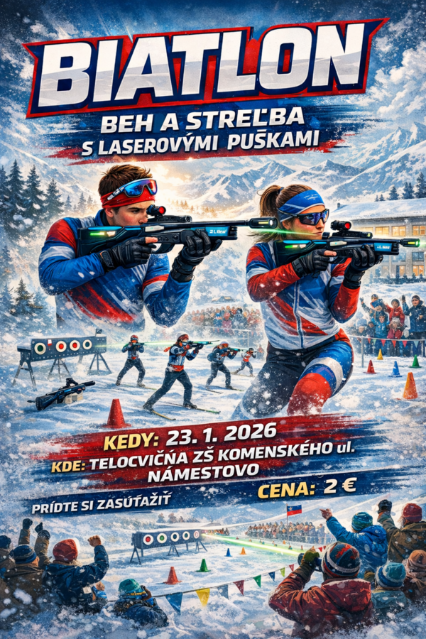 Zimné olympijské hry sú za dverami a my sa na ne naladíme športom. Pozývame žiakov na biatlon – beh a streľbu s laserovými puškami, kde si môžu vyskúšať presnosť, rýchlosť aj vytrvalosť.