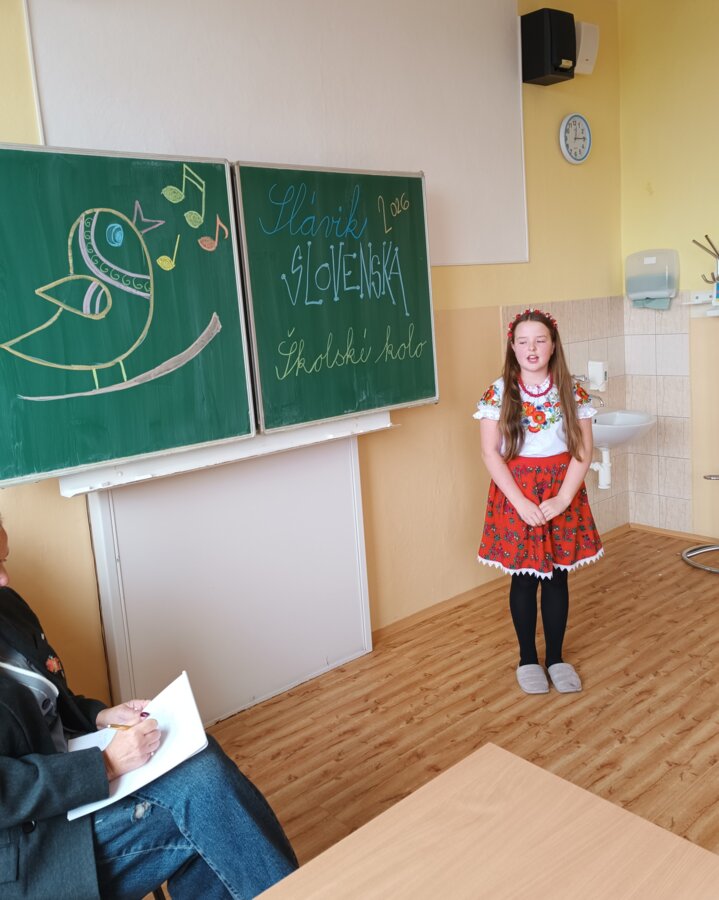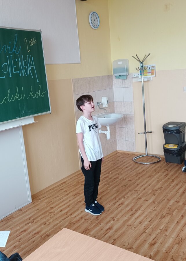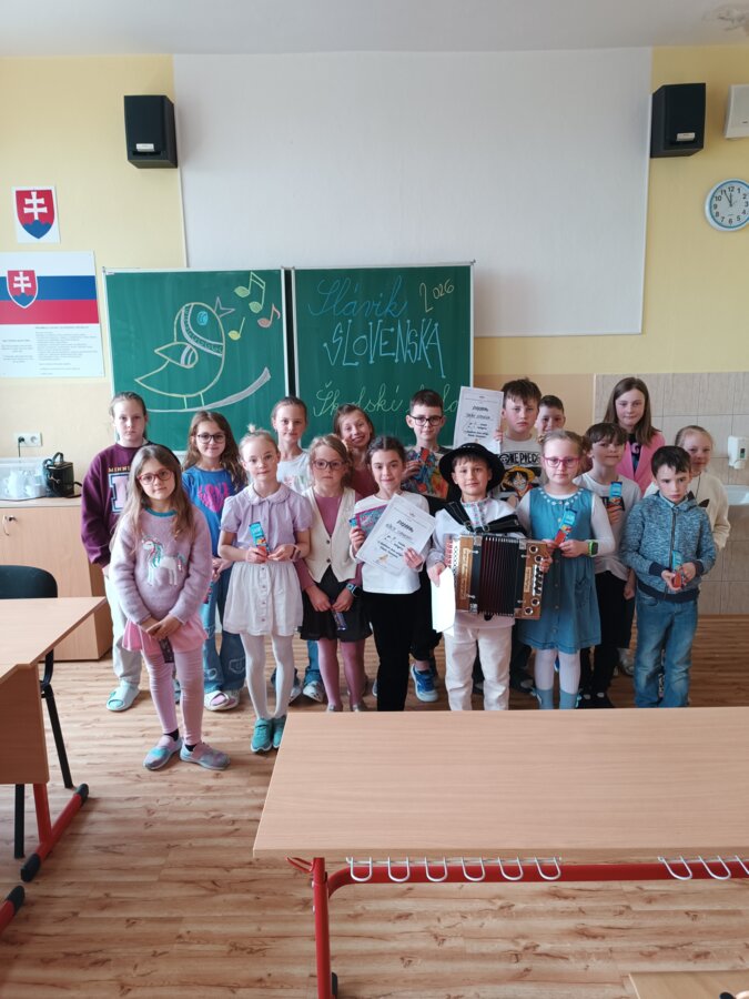 Vo štvrtok (16. 4) sa na našej škole niesol deň v znamení spevu. Naše žiačky a žiaci predviedli svoje talenty na školskom kole súťaže v speve slovenských ľudových piesní – Slávik Slovenska 2026. Súťaž prebiehala v troch kategóriách: 1.–3. ročník, 4.–6. ročník a 7.–9. ročník.
