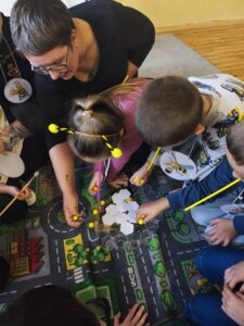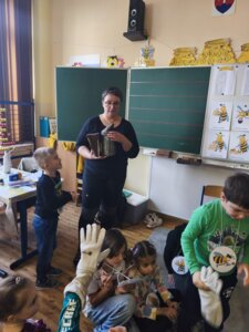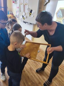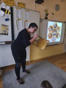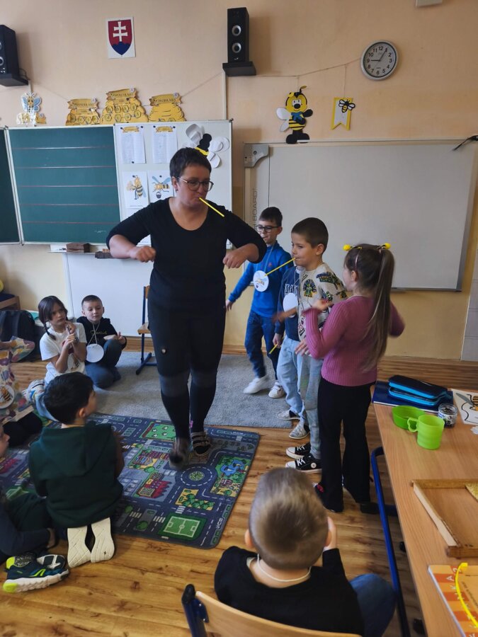 Žiaci sa dozvedeli, ako vzniká med, kto sa stará o úľ, akú úlohu majú robotnice, trúdy a kráľovná, a prečo sú včely pre prírodu také dôležité. Nechýbali ani zábavné aktivity