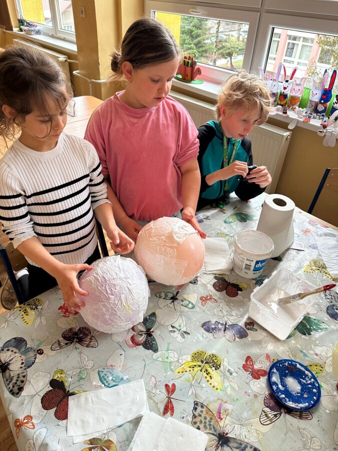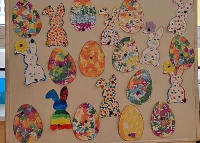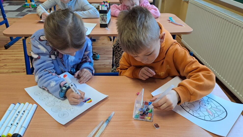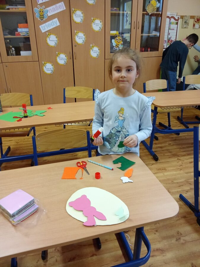 V ŠKD sa deti s radosťou pripravovali na príchod Veľkej noci. S veľkým nadšením vyrábali rôzne veľkonočné dekorácie – farebné vajíčka, veselých zajacov či jarné ozdoby. Pri tvorení nechýbala dobrá nálada, fantázia ani šikovné ruky. Výsledkom sú krásne veľkonočné výzdoby, ktoré nám spríjemňujú predveľkonočný čas. 🐰🎨🌼